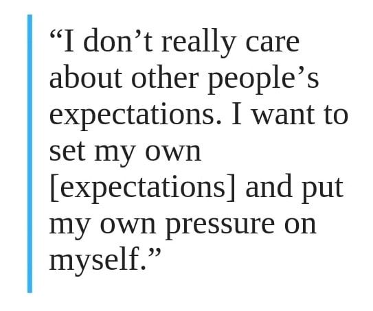 “I’ve set my own goals and ignore all the expectations and what people expect me to do,” he said.